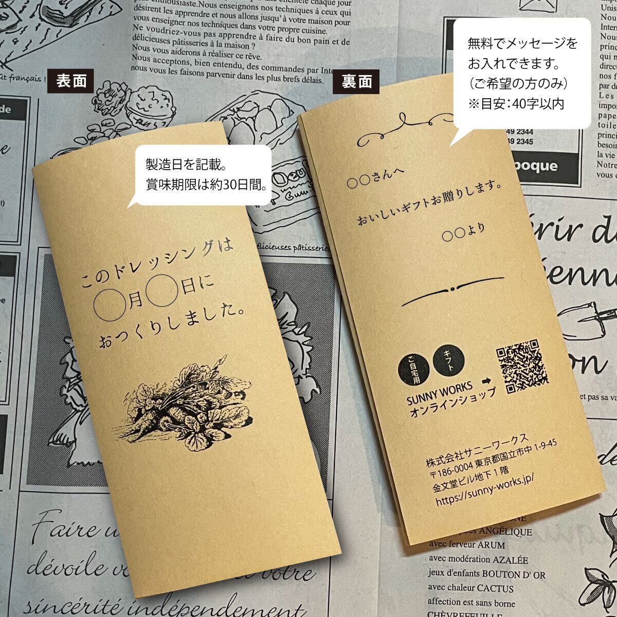賞味期限:ラベルに印字(ドレッシングは製造日より約1ヶ月間)